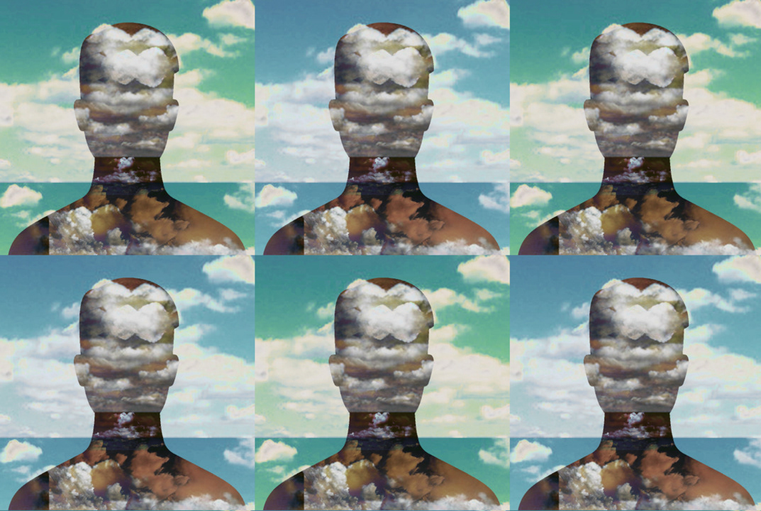 A Magritte inspired image created from a photo of a clouded sky along with graphics created in Photoshop. © Jennifer Gale