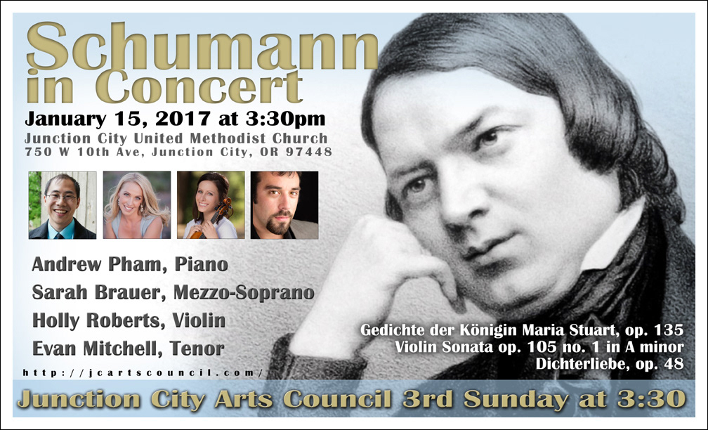 Design and creation of concert poster for this ensemble group of musicians and singers performing the classical works of Robert Schumann. © Jennifer Gale